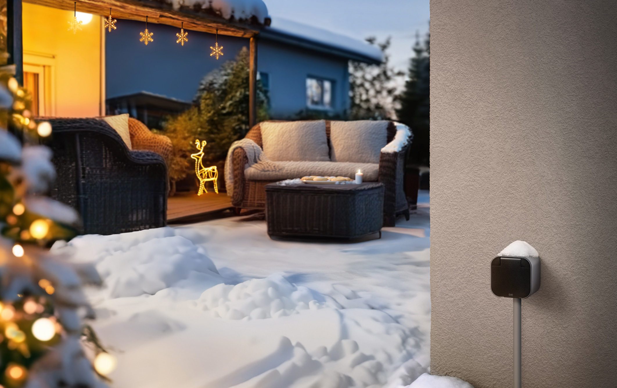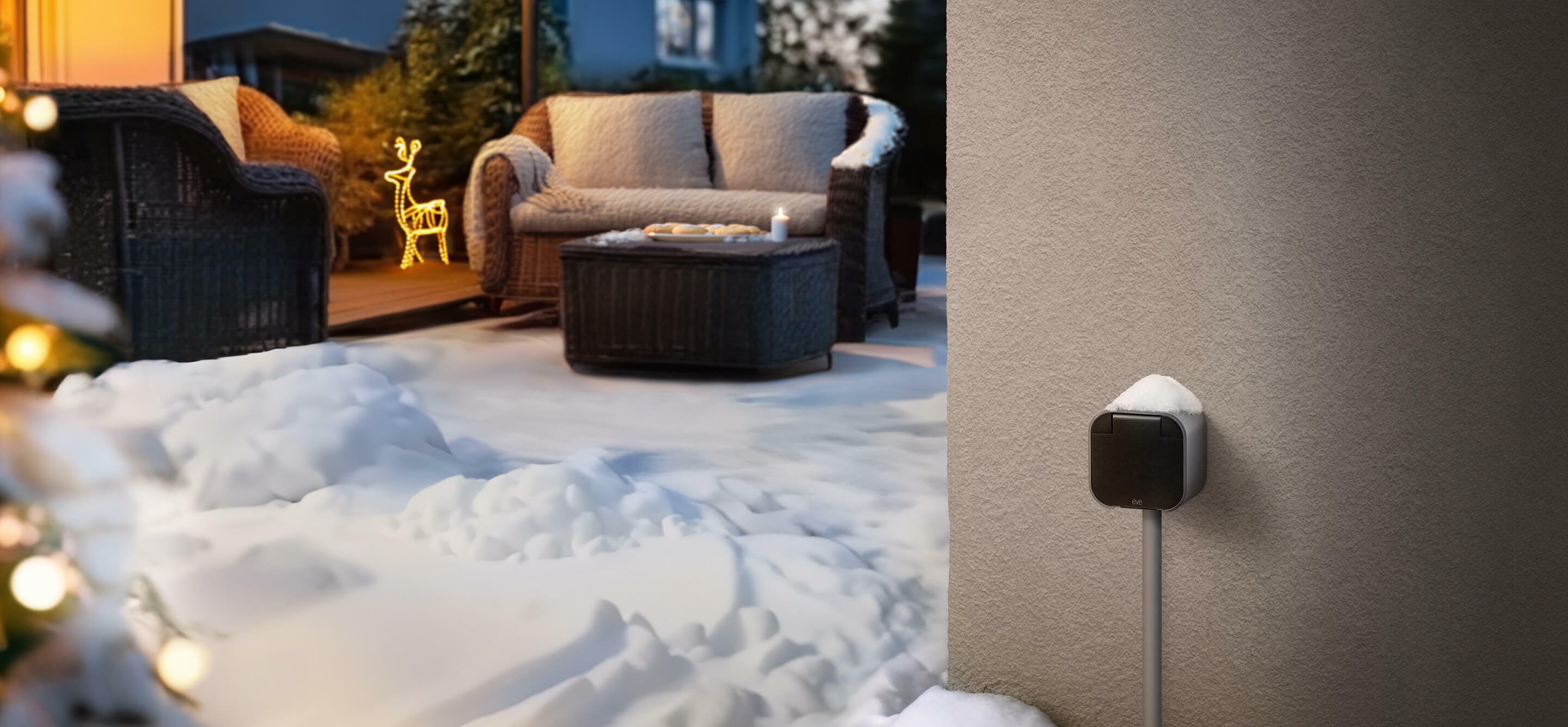 Featuring IP44 water resistance and equipped with a protective cover flap, Eve Energy Outdoor is built for the outside.