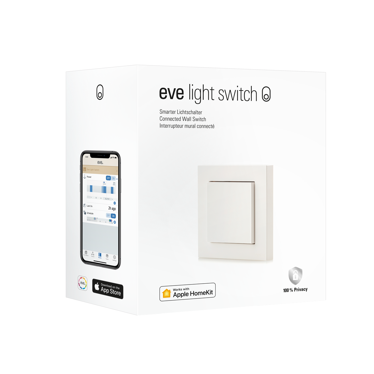 Benefit from a more responsive and reliable smart home thanks to Thread technology – all you need is a compatible hub. As a router node, Eve Light Switch relays other Thread accessories’ data packets and enhances the stability and reach of your smart home. Plus, thanks to Thread, Eve Light Switch is far more energy efficient than Wi-Fi switches.