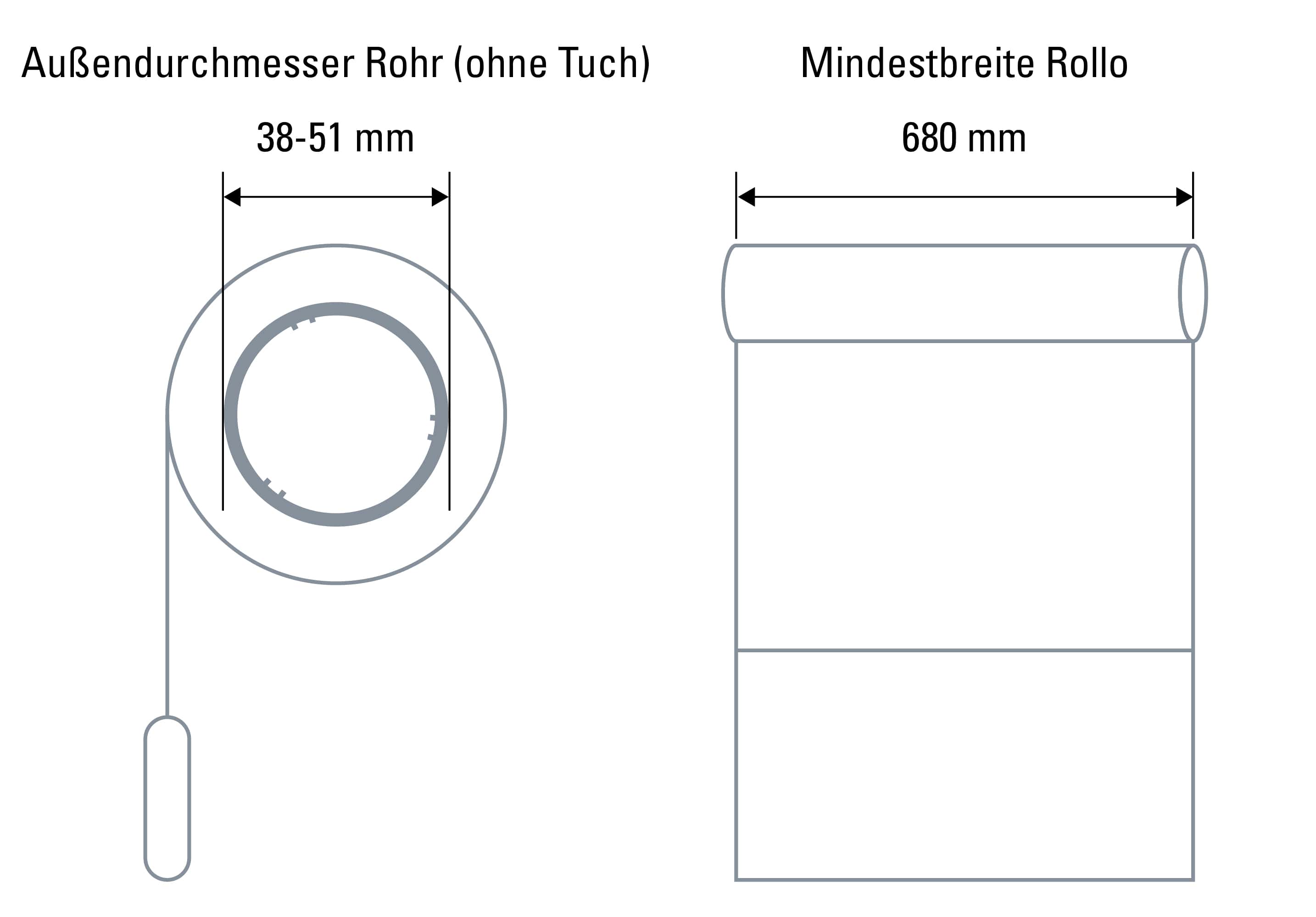 Mindestbreite Rollo: 26 ¾'' / 680 mm
