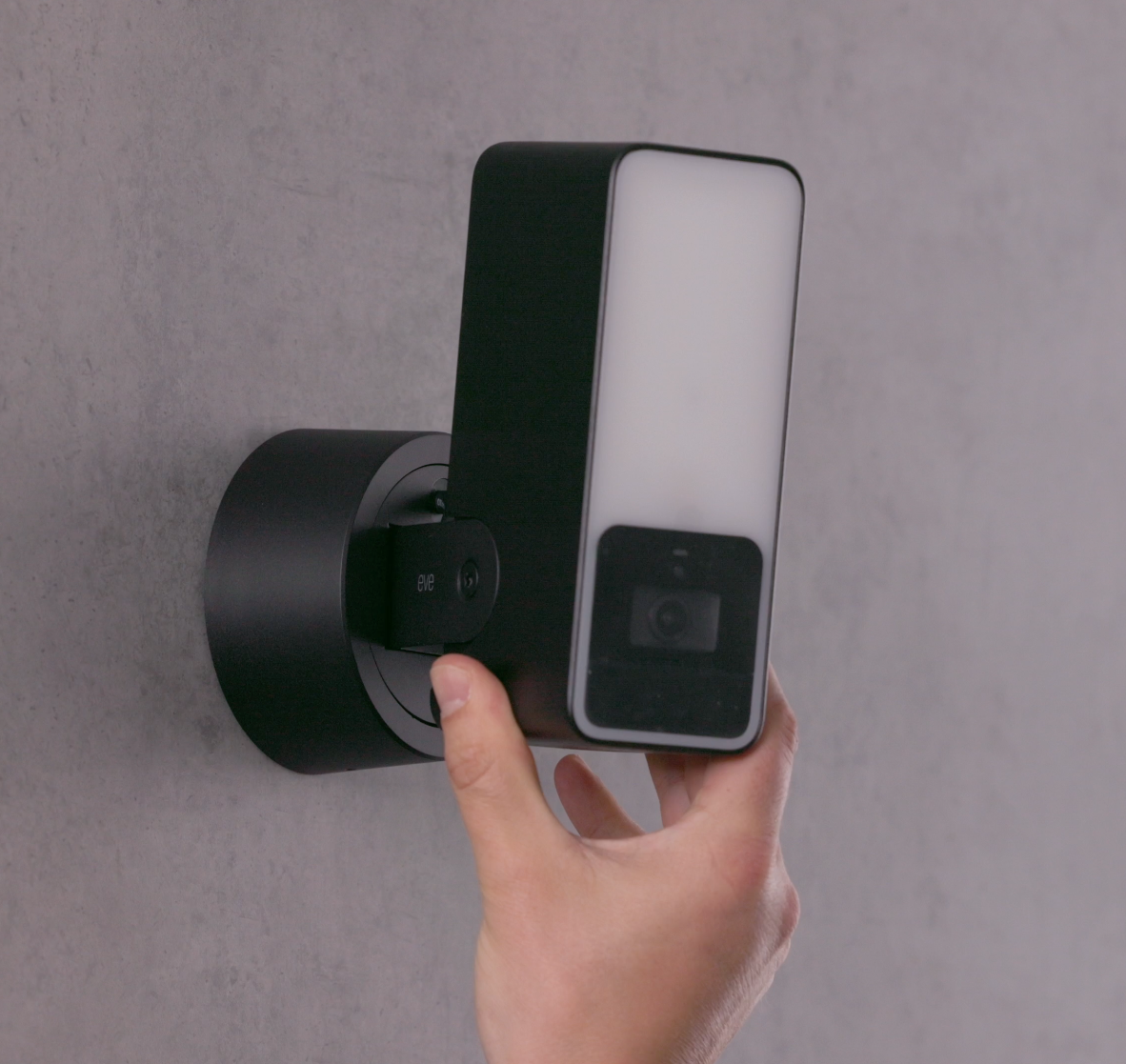Thanks to the three-axis camera angle adjustment, you can easily adapt Eve Outdoor Cam to your needs. Eve Outdoor Cam is best installed replacing an existing outdoor light – perfect for both your doorstep and patio.