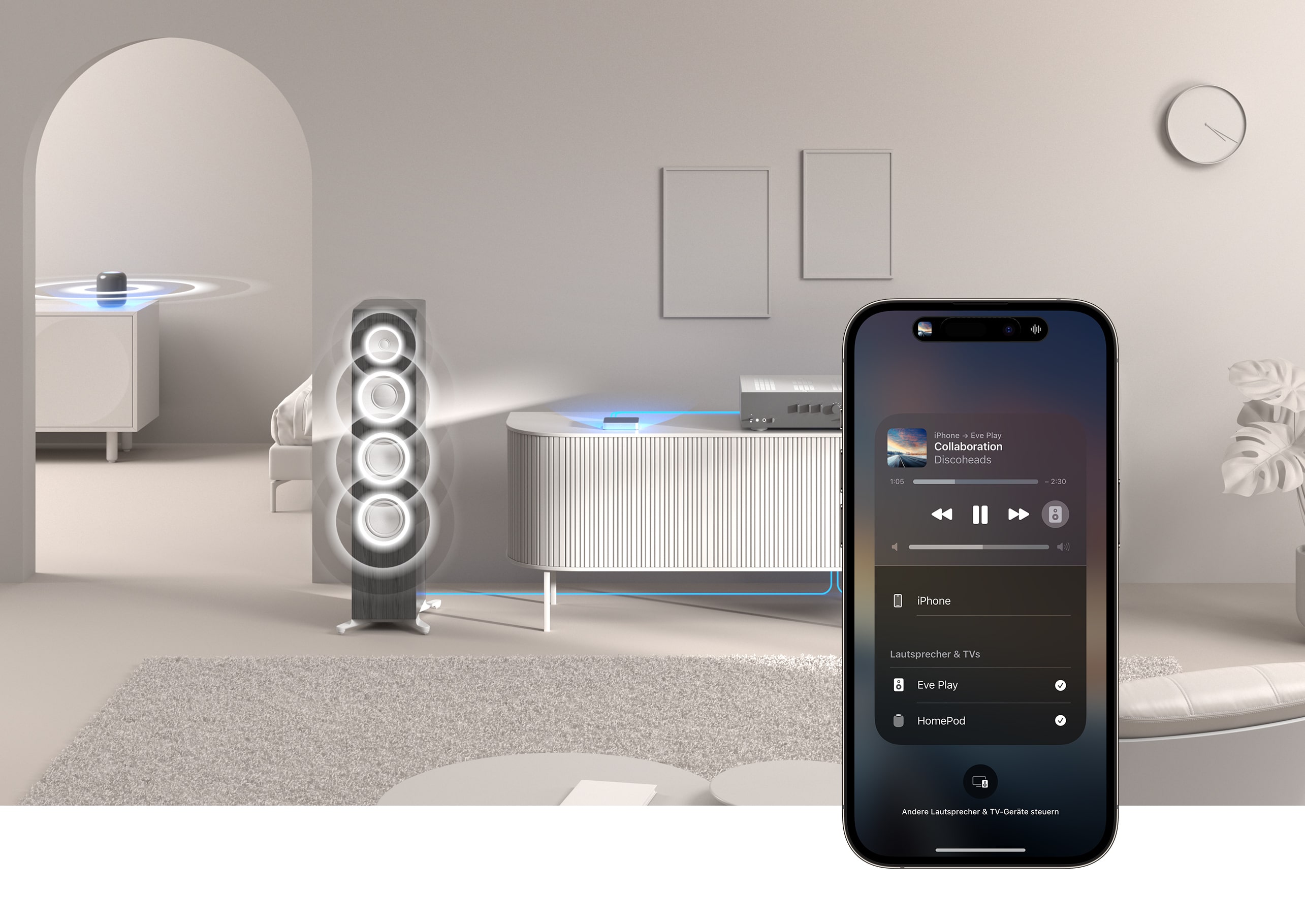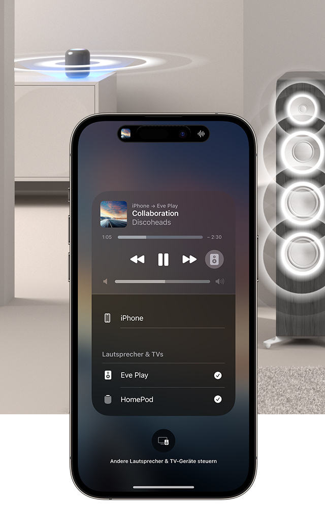 Eve Play richtest du schnell und einfach per Eve-App oder Apple Home ein. So integrierst du deine bestehende Anlage bequem in deine zentrale Smart-Home-Steuerung. Mit HomeKit-Automationen und einem Apple Music Abo spielt das Hi-Fi-System auf Wunsch deine Lieblingsmusik, wenn du nach Hause kommst.