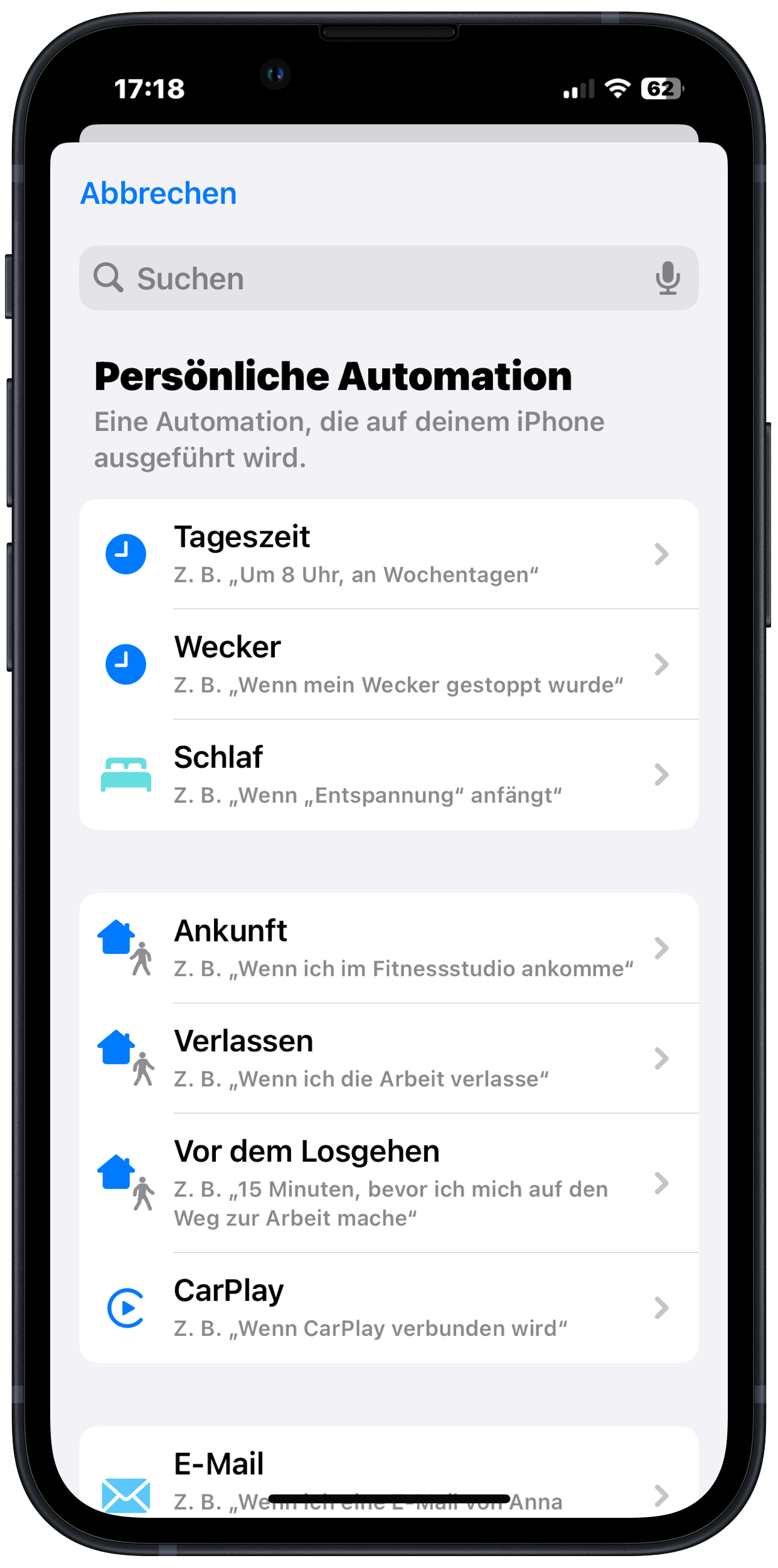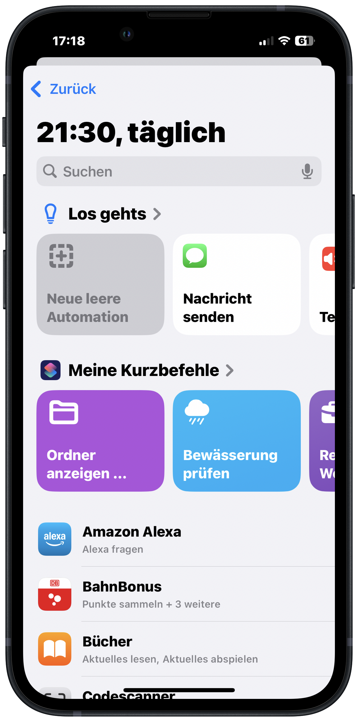 Noch viel komfortabler wird es, wenn du die Überprüfung automatisch vornehmen lässt. Dann kümmert sich dein Telefon darum, den Kurzbefehl auszulösen – eine Sache weniger, an die du denken musst.