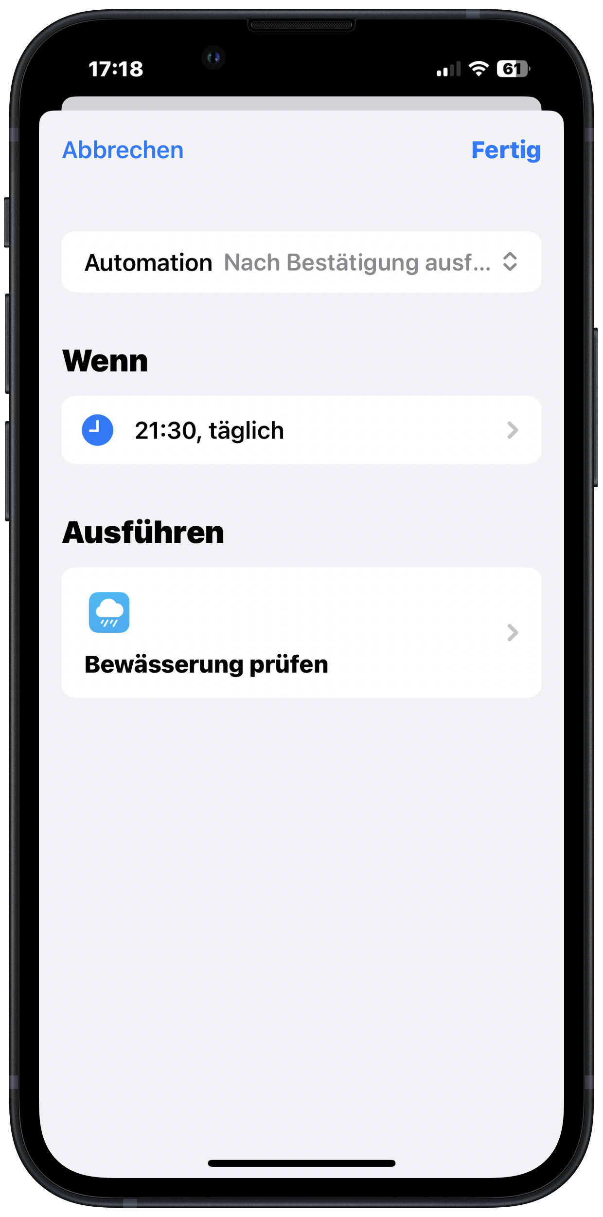 Automation für Kurzbefehl "Bewässerung prüfen" einrichten