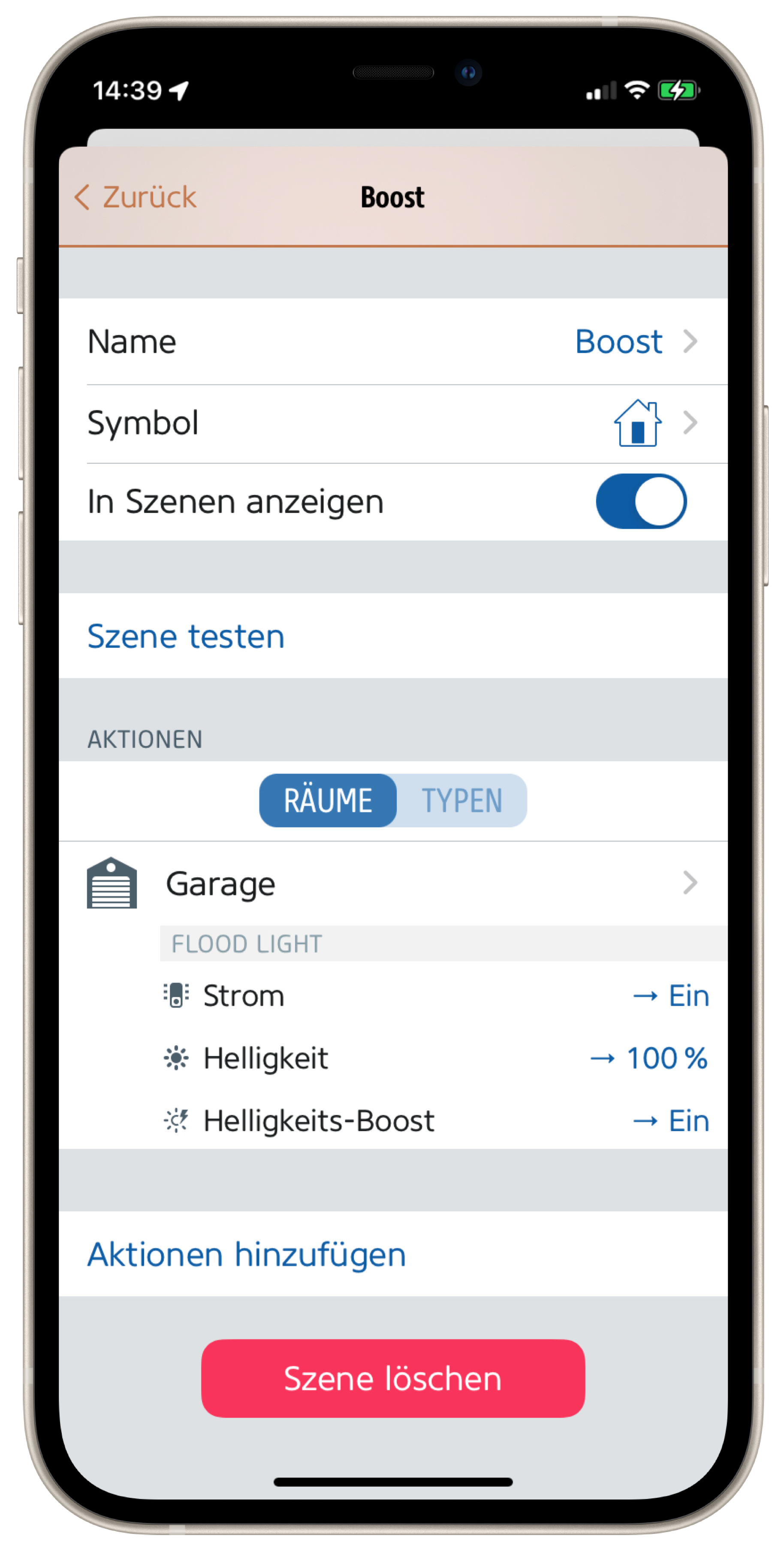 Zwar kennt HomeKit den Helligkeits-Boost deines Flutlichts nicht, aber die Eve App lässt dich Szenen mit dieser mächtigen Funktion erstellen. Das ermöglicht beispielsweise, weitere Bewegungsmelder und damit Flächen außerhalb des von Eve Outdoor Cam überwachten Bereichs anzubinden. Jemand nähert sich der Rückseite des Gartenhäuschens? Flutlicht an, und zwar mit Boost!